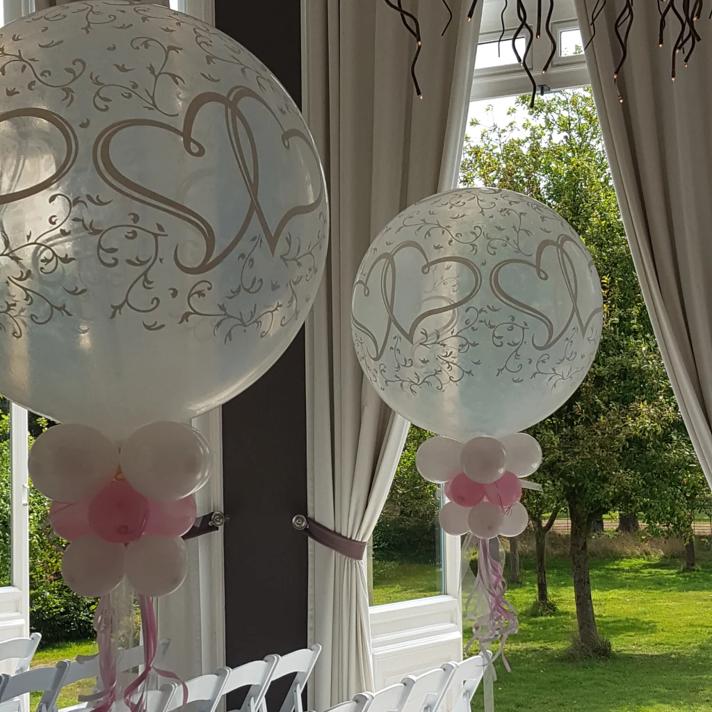 Bogen, pilaren, ballon boeketten of bijvoorbeeld bedrukte ballonnen. Het kan allemaal bij Heppie-store. Heeft u speciale wensen, denk bijvoorbeeld aan de kleur ballonnen of de kleur van het lint, wij denken graag met u mee om de decoraties helemaal naar uw wensen en behoeften te maken.